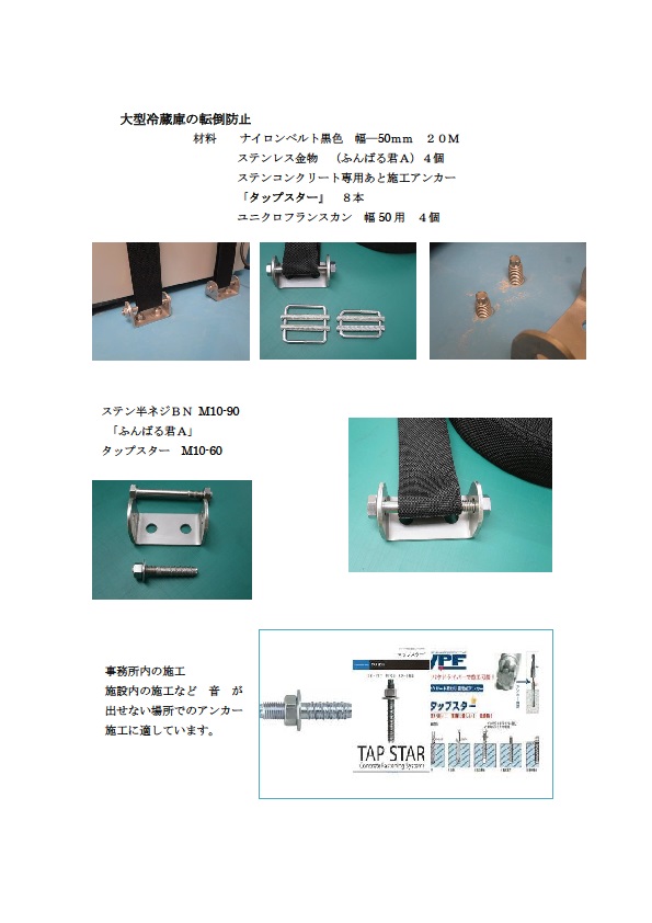 他、家具転倒防止に使用する、各種金物の別注もお受けしております。